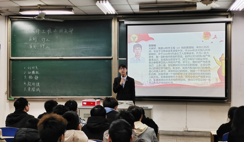 推荐优秀团员、青年作为党的发展对象是共青团发挥党的助手和后备军作用的重要体现,是党赋予共青团的光荣职责。为认真做好“推优”工作,向党组织输送思想上进、高素质的团员青年做发展对象, 根据《关于开展best365足球官网2020-2021学年第二学期“团内推优”工作的通知》要求,3月23日,“团内推优”示范班——19软件工程2团支部推优大会在华罗庚馆202教室举行。此次大会,在校团委、院团委以及辅导员庄丽老师的监督下,支部39名共青团员共到场。