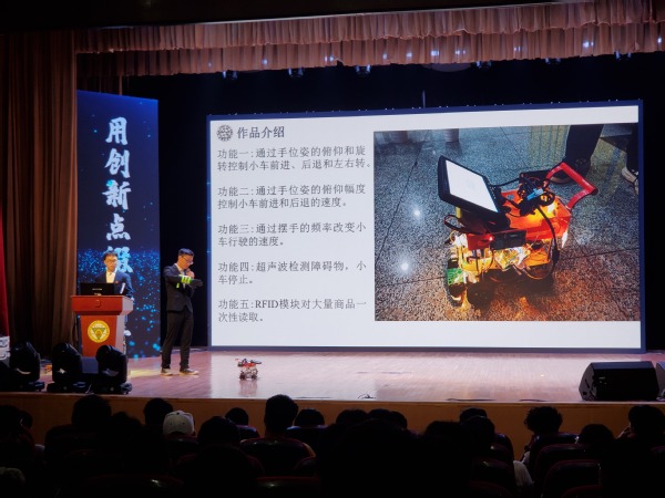 钱成、吴明谭展示《手势控制智能购物车》