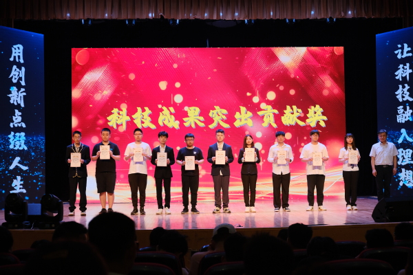 “颁奖与致辞”中,邢纪红书记为获得“科技成果突出贡献奖——软件、专利类”奖项的同学颁发荣誉证书,孟正大处长为“科技成果突出贡献奖——论文类”同学颁发荣誉证书,施杰处长颁发了科技竞赛卓越研究奖,潘明烽书记为获得“科技创新实践优秀奖”的代表颁发了荣誉证书。