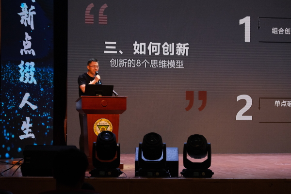 “创新创业教育”篇章中公司优秀员工、南京兄游信息科技有限公司董事长曹兆阳,结合自己创创业成功的实例,从“为什么要创新”“创新不等于发明创造”“如何创新”三个方面,向全场师生带来了成功的经验,也点燃了老员工创新创业的激情。