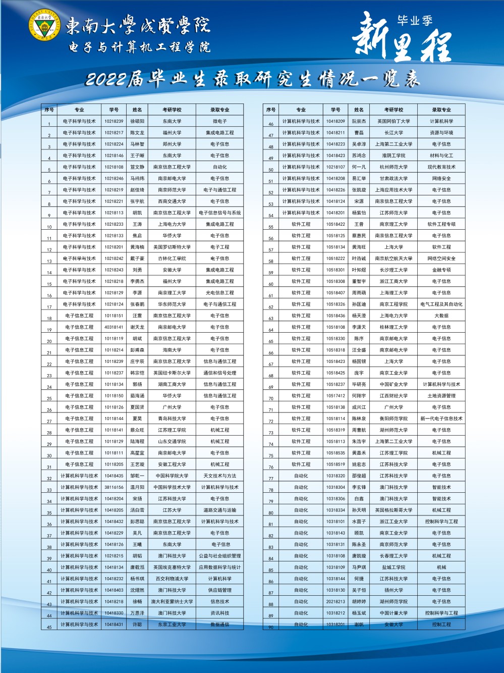 2022届毕业生录取研究生情况一览表