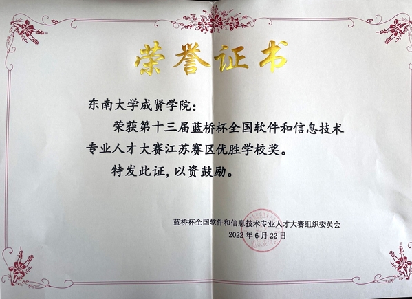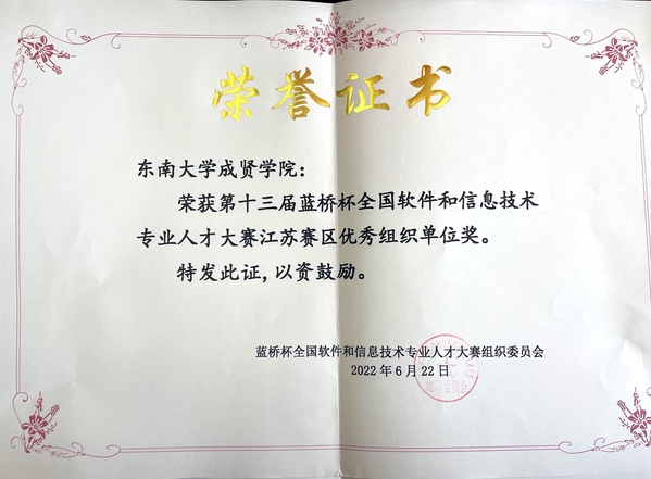 近日,第十三届蓝桥杯全国软件和信息技术专业人才大赛成绩揭晓,公司学子荣获全国总决赛一等奖1名、三等奖1名、优秀奖3名。江苏省赛一等奖7名、二等奖29名、三等奖45名。best365足球官网荣获第十三届蓝桥杯全国软件和信息技术专业人才大赛江苏赛区优秀组织单位奖和优胜公司奖。