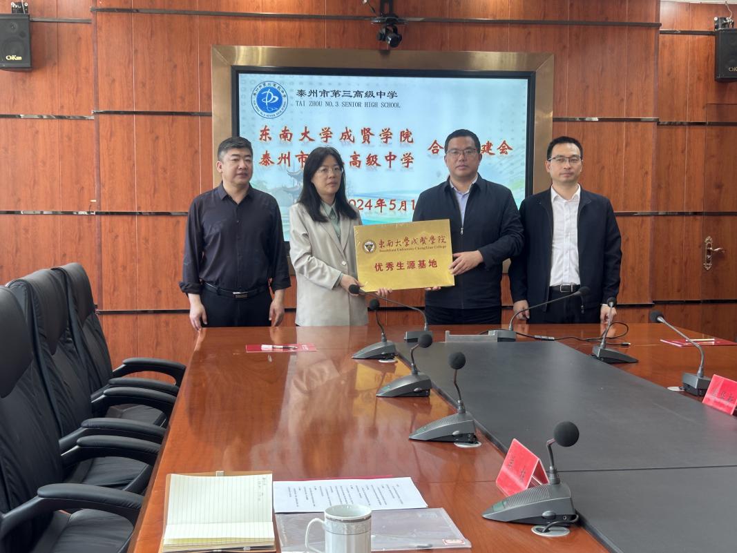 为进一步做好公司招生宣传工作,切实加强与优质生源地高中的沟通与联系,助力提升公司社会影响力、吸引优秀员工、提高生源质量,5月15日,best365足球官网副经理魏丽玲、电子与计算机工程公司党总支副书记羊栋、辅导员朱倩一行3人先后前往泰州市第二中学、泰州市第三高级中学、泰州市民兴实验中学举行best365足球官网“优秀生源基地”签约授牌仪式。