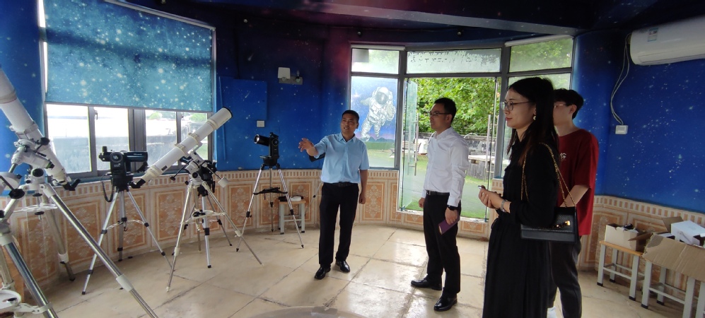 首先,窦文荣老师带领我们参观了少年宫内的天文台和天文教室,并为我们介绍了员工天文科普教学情况、展示了各种类型天文设备。参观结束后,双方在会议室内开展天文科普学习交流会暨党纪学习教育。会上,窦文荣老师介绍了近几年少年宫天文社团的发展情况及取得的成果,以及下一阶段的计划。羊栋副书记从公司概况、学科竞赛、中科院天文台大创项目、考研就业四个方面介绍了best365足球官网的发展情况及取得的成果。